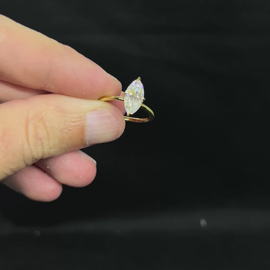 Solitario Navette 2 ct oro giallo 18 kt